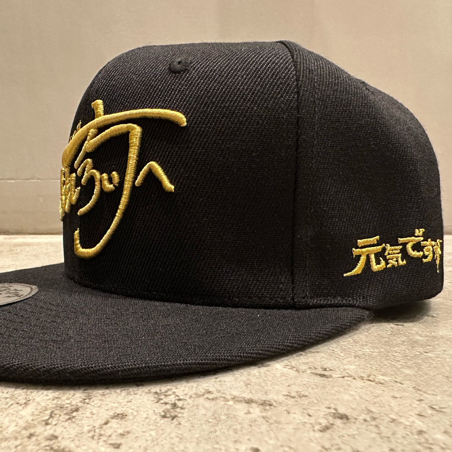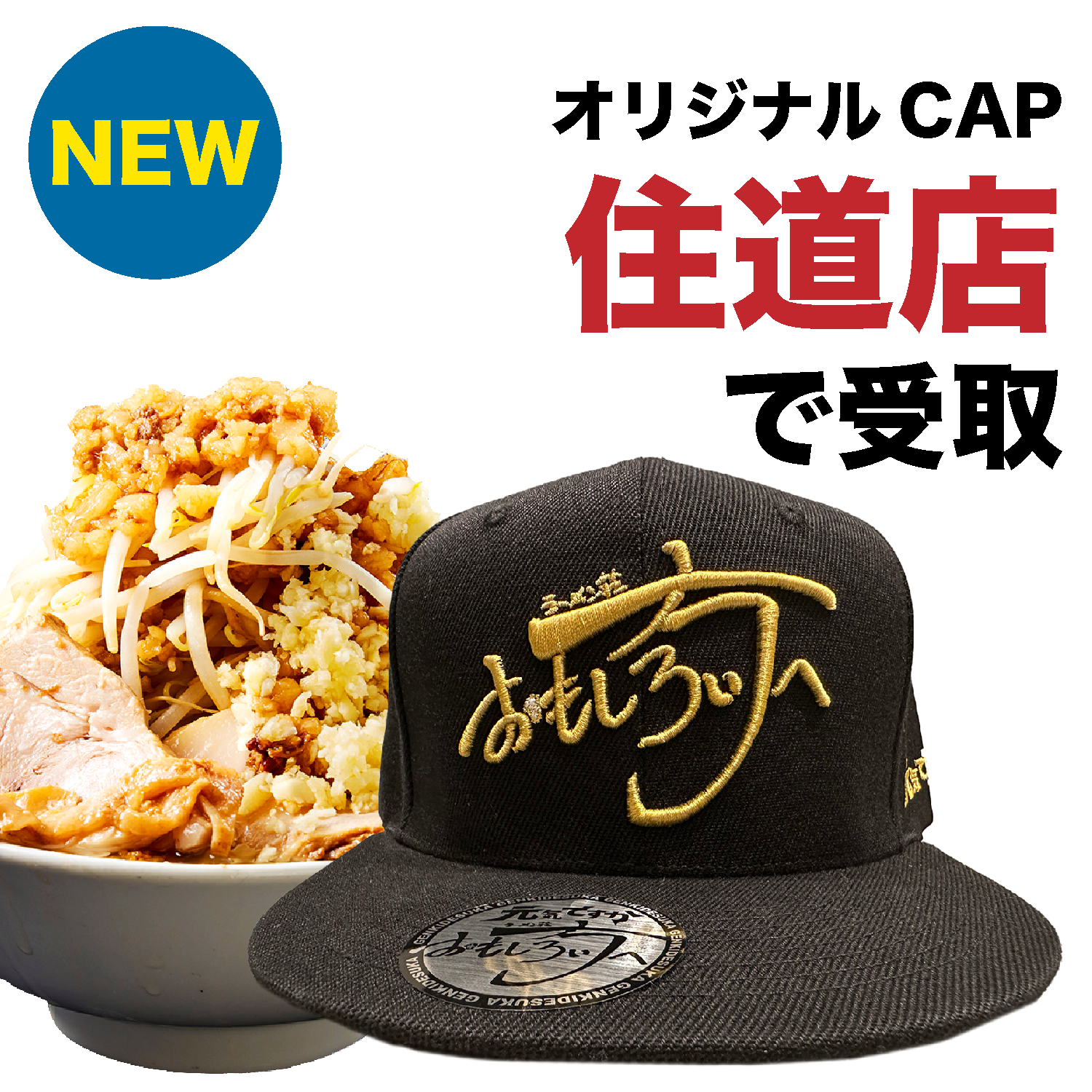 【おもしろい方へ 住道店でのみ利用可能|生地:黒|刺繍:金】オリジナルCAP付ラーメンチケット(麺量は500gまで自由に選べます)
